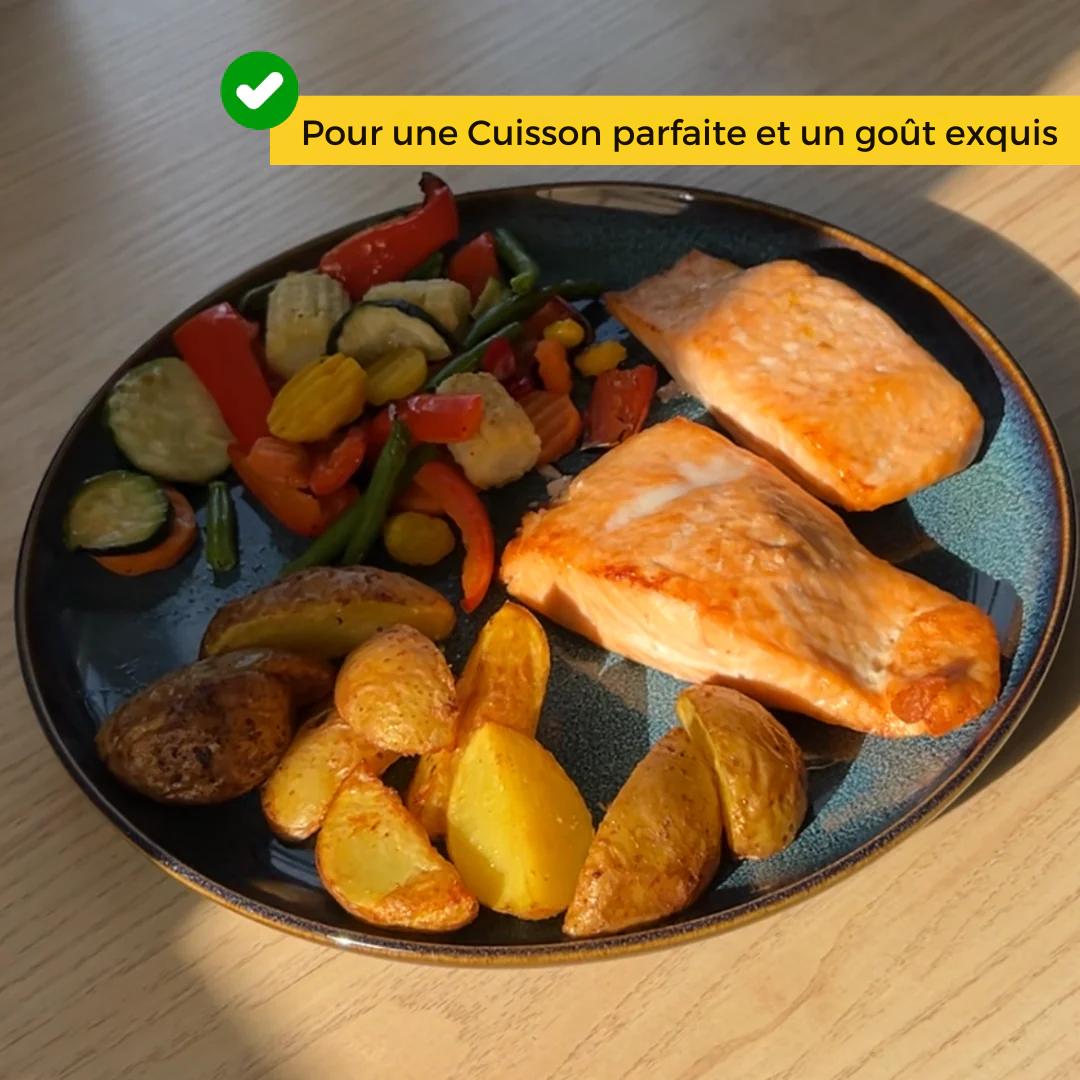 ✅ Cuisson inégale et aliments mal dorés ? Grâce à sa conception en étages, l’air chaud circule de manière homogène et garantit des plats parfaitement cuits sur tous les niveaux.